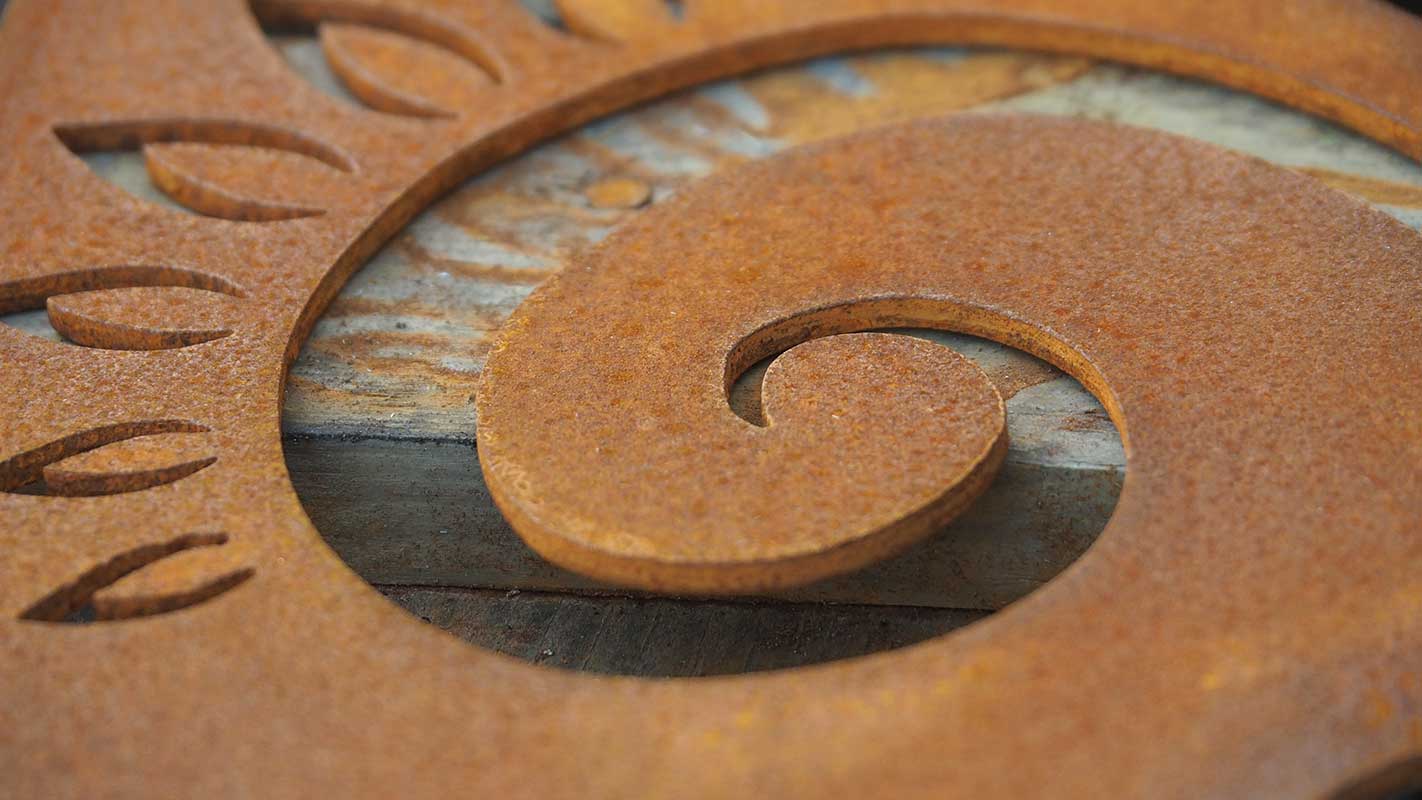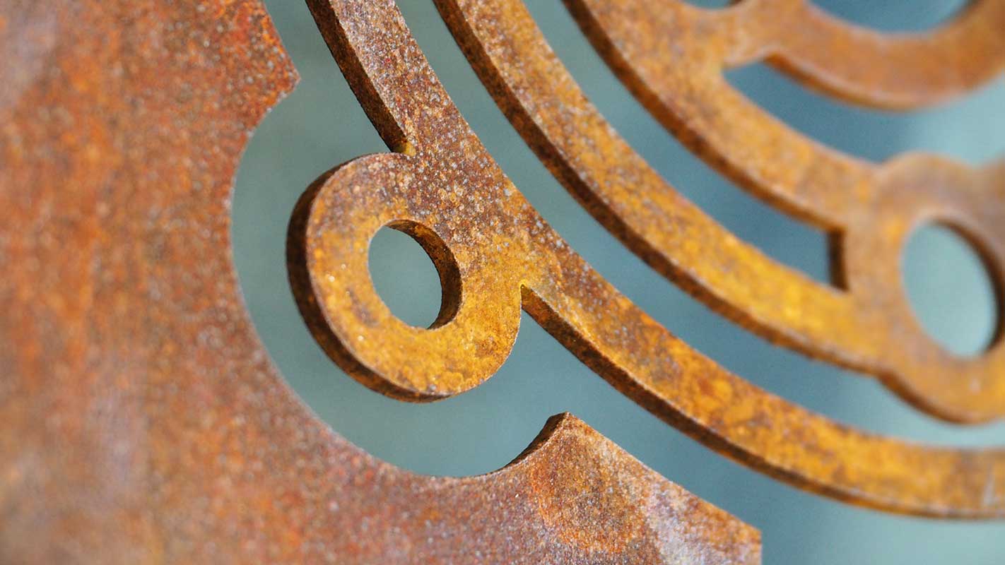 Il CORTEN ha la caratteristica di ossidarsi/arrugginirsi rimanendo stabile, a contatto con l’aria esso si ossida formando una patina che rimane superficiale e che finisce per costituire un film protettivo che impedisce all’oggetto di corrodersi internamente e rovinarsi, donandogli al tempo stesso un gradevole effetto estetico.